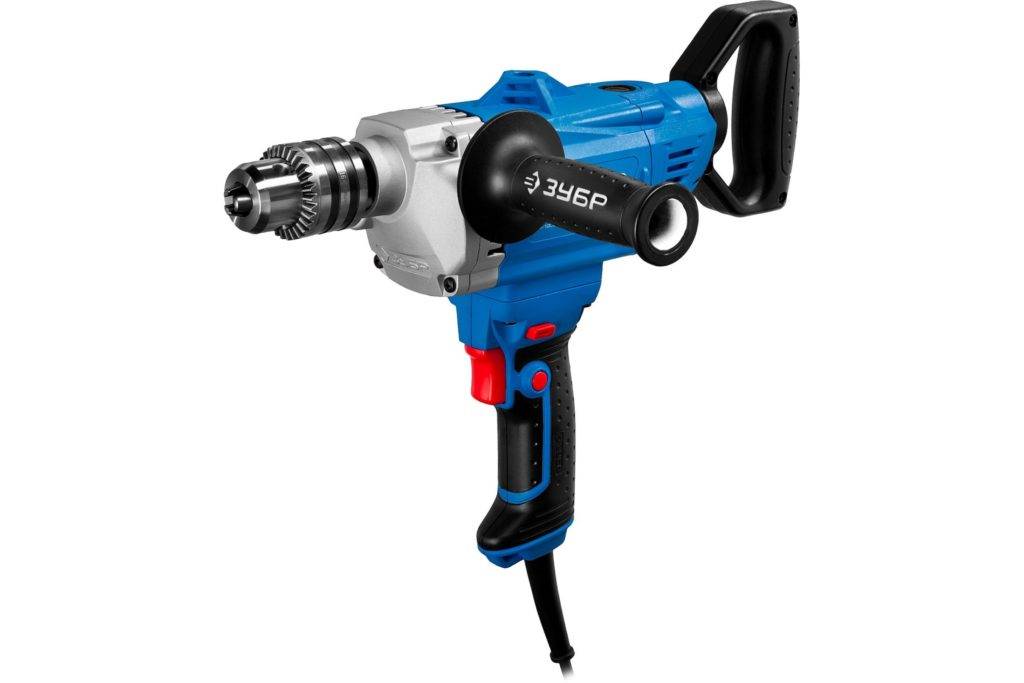 Эта конструкция предназначена для просверливания отверстий в разных материалах, а также замешивания растворов. В комплект поставки входит венчик. За счет нестандартного подхода производителю удалось добиться высокого крутящего момента. Присутствует возможность работы в непрерывном режиме с последующей фиксацией кнопки включения. На ручке имеются прорезиненные накладки, которые исключают риск выскальзывания инструмента из мокрых ладоней. Заявленная мощность – 850 Вт. Установлен патрон ключевого типа. Опция реверса не предусмотрена. Длина фирменного кабеля – 3 м. За повышенное удобство в использовании отвечает электронная регулировка оборотов.