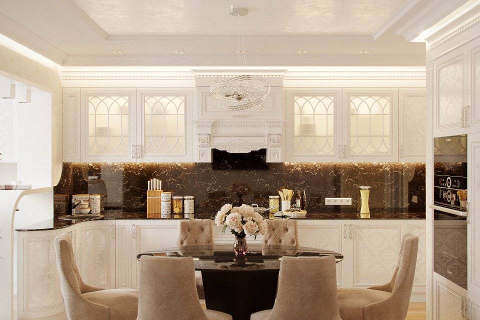 Стиль кантри или прованс. Уклон в деревенскую тематику, с классической резной мебелью, самобытными аксессуарами и посудой в открытом доступе. Уместны в интерьере кухни засушенные ветки растений, гирлянды из овощей на стенах, цветы в глиняных горшках или вазах.
