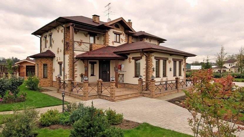 Отделка дома декоративным камнем несет в себе такие позитивные моменты, как возможный выбор цветовой гаммы, облегчение конструкции, придание ей оригинальности и самобытности. Такие дома привлекают ощущением достоинства и достатка, выглядят стабильными, прочными и натуральными.