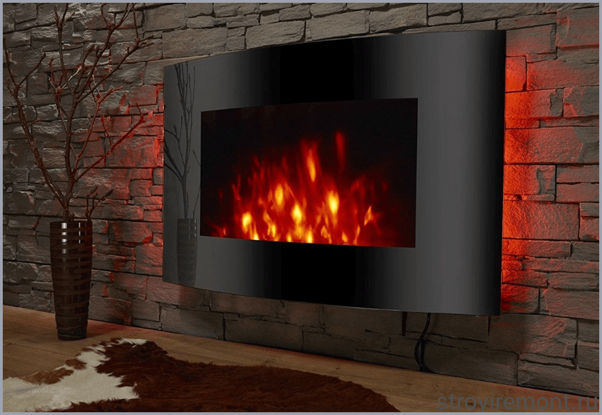 Если камин предполагает крепление на стену кронштейнами, то подойдет практически любая стена, на которой есть для этого место. Главное, чтобы был доступ к розетке.