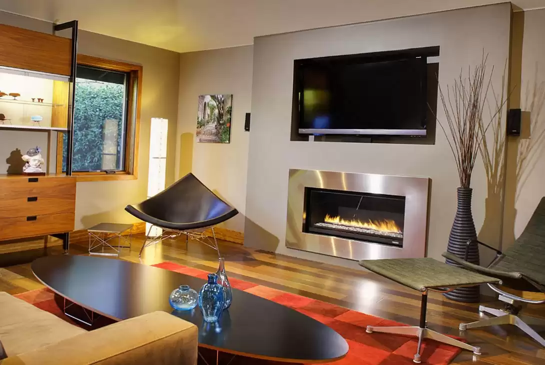 А как же быть с пламенем? Без него камин не камин. Благотворное воздействие созерцания пляшущих языков огня заложено в нас генетически с доисторических времен. Огонь в пещере означал благополучие и безопасность племени.