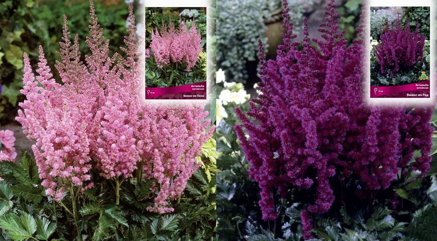 На фото: Астильба китайская Вижнс ин Пинк и Астильба китайская Вижнс ин Ред