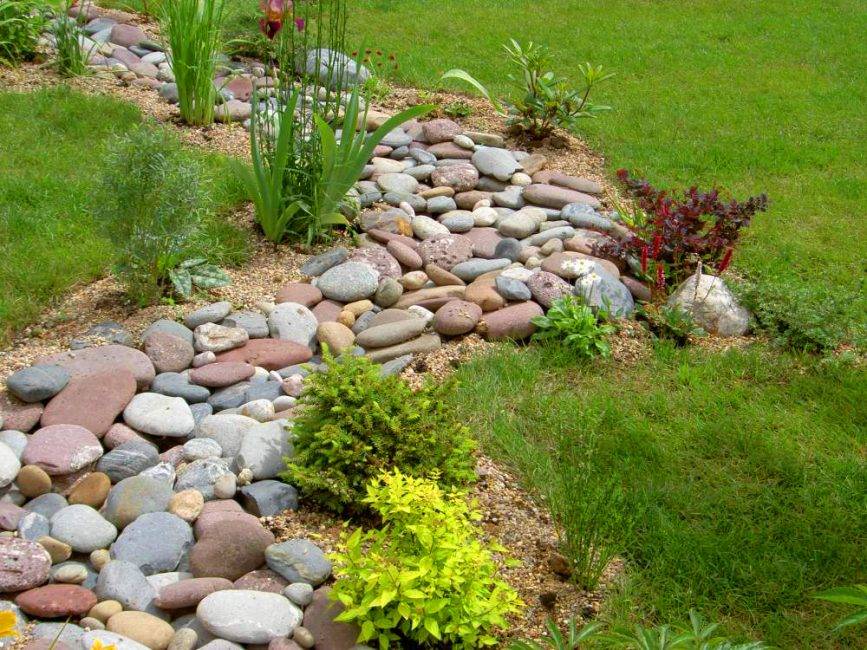 Самый бюджетный вариант, поскольку в его исполнении не требуются большие валуны. Но бюджетный не значит некрасивый. Если приложить немного усилий и чуточку вкуса, то может получиться вполне достойный результат.