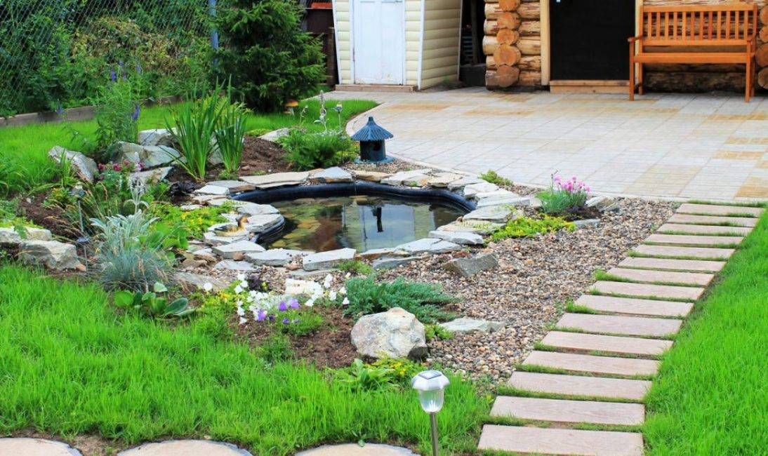 Отлично впишется на слегка заболоченном участке. Для его создания необходимо снять верхний слой грунта, который высыпать по краям, формируя холмы. В берега вкопайте гранитные камни. Для подхода к болотцу создайте специальную дорожку или соорудите деревянные мостики.