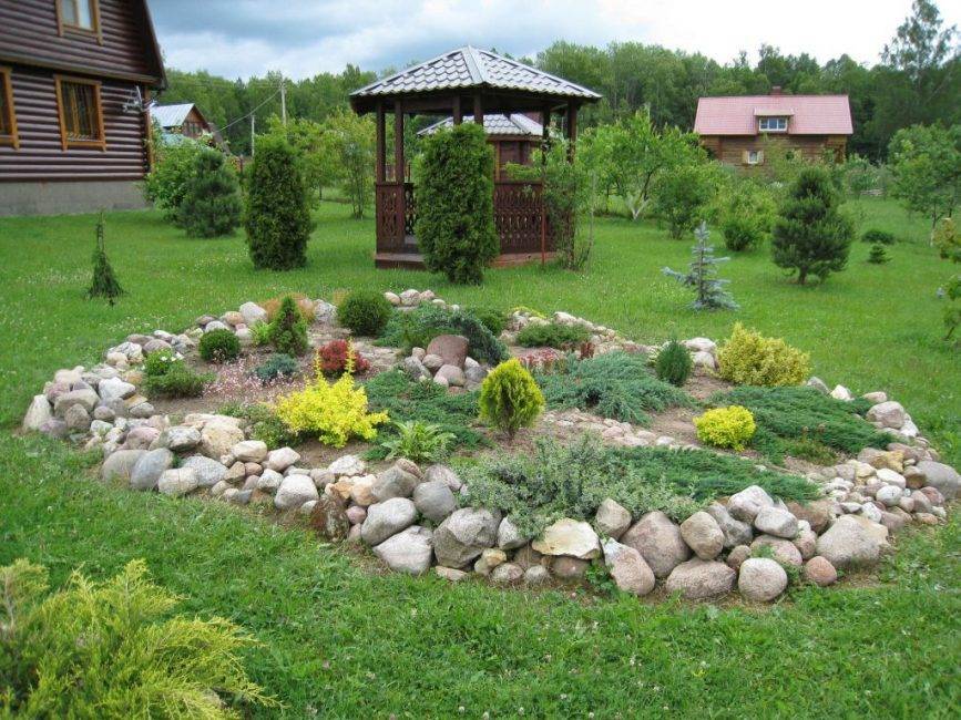 Использование рокариев для декора ландшафта предполагает различные формы.