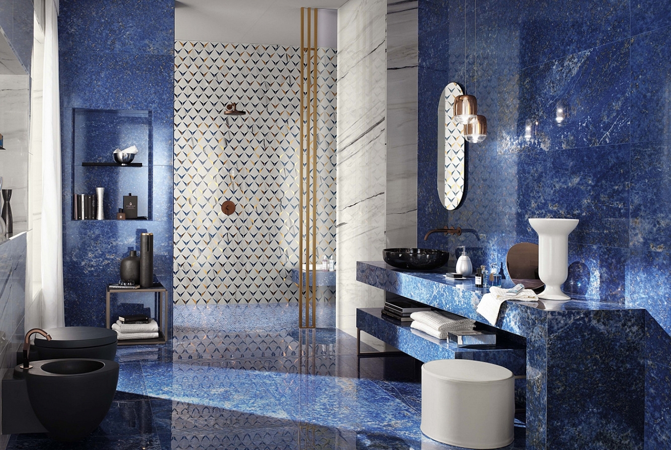 Многие итальянские фабрики выпускают красивые серии плитки для санузлов и ванных. В этот ассортимент включены изделия для стен и пола, всевозможные элементы декорирования. Для любой серии разработан свой особый узор и оттеночное исполнение. Базовые изделия помогают создать зонирование с одним-единственным орнаментом или обзорными изображениями по всему помещению.