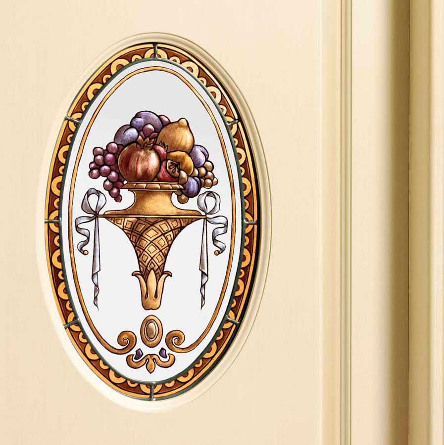 Такие входные блоки могут быть украшены витражами с оригинальной росписью. Нанесение рисунков производителем осуществляется по специальной технологии, что обеспечивает дверным изделиям оригинальный вид.