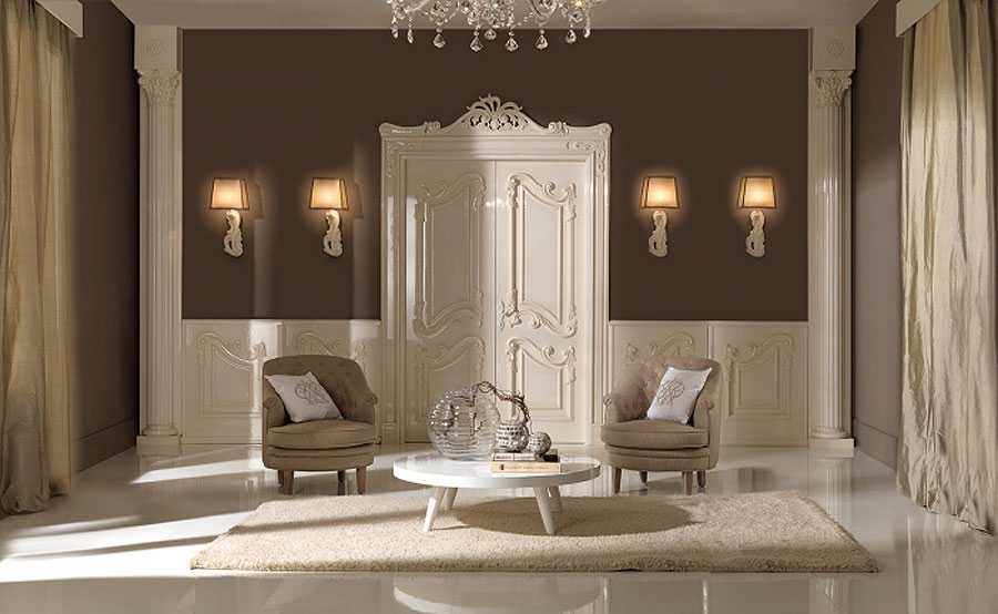 Светлые оттенки дерева, например, ясень и шампань, а также другие нюдовые и песочные цвета будут отлично сочетаться с полом, который будет хотя бы на тон темнее. Что же касается стен, то в данном случае они должны быть в очень насыщенных и темных цветах, например, в коричневом, шоколадном или бордовом, также различные узоры будут весьма кстати. Если в вашем интерьере стены нейтральных цветов, то итальянские двери лучше всего выбрать контрастного оттенка, например, цвета ольхи, вишни или темного ореха. А вот очень темные оттенки дверей могут наиболее выгодно подчеркнуть светлые стены и более темный пол