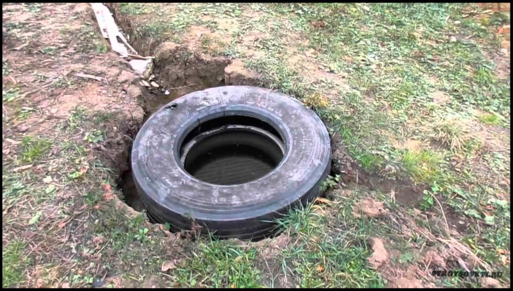 Также большой популярностью пользуется яма из покрышек. Такое сливное сооружение отличается доступностью и простой установки. В качестве стен в этой конструкции применяются покрышки для легковых или грузовых автомобилей (в зависимости от потребного объема слива).