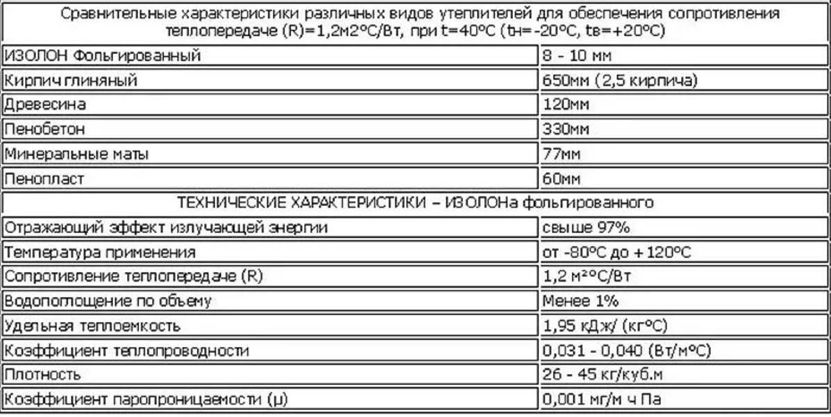 Сравнение характеристик разных утеплителей и строительных материалов Изолоновая пароизоляция подразделяется на такие марки:
