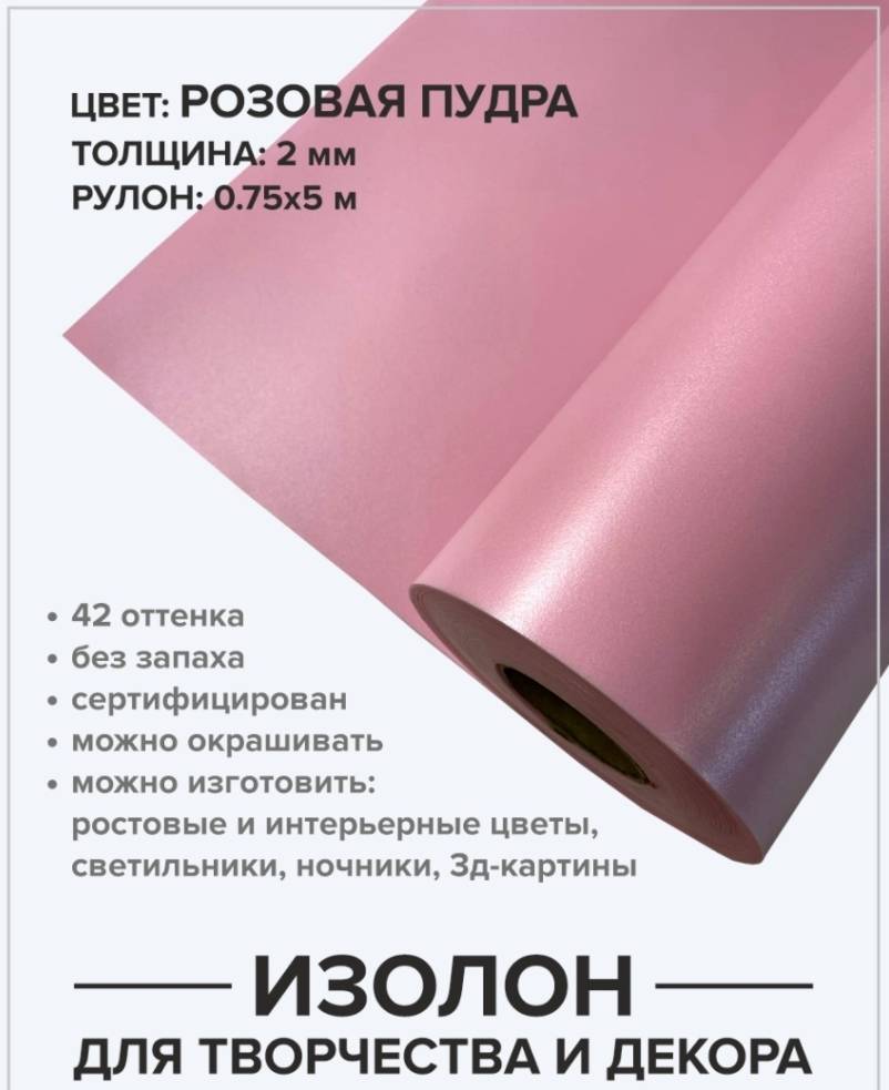 - Цветной (фоамиран, фом). Изолон выпускается в различных цветах. В магазинах можно купить в рулоне, также листы разных размеров и толщины. Широко используют в дизайне и декоре.