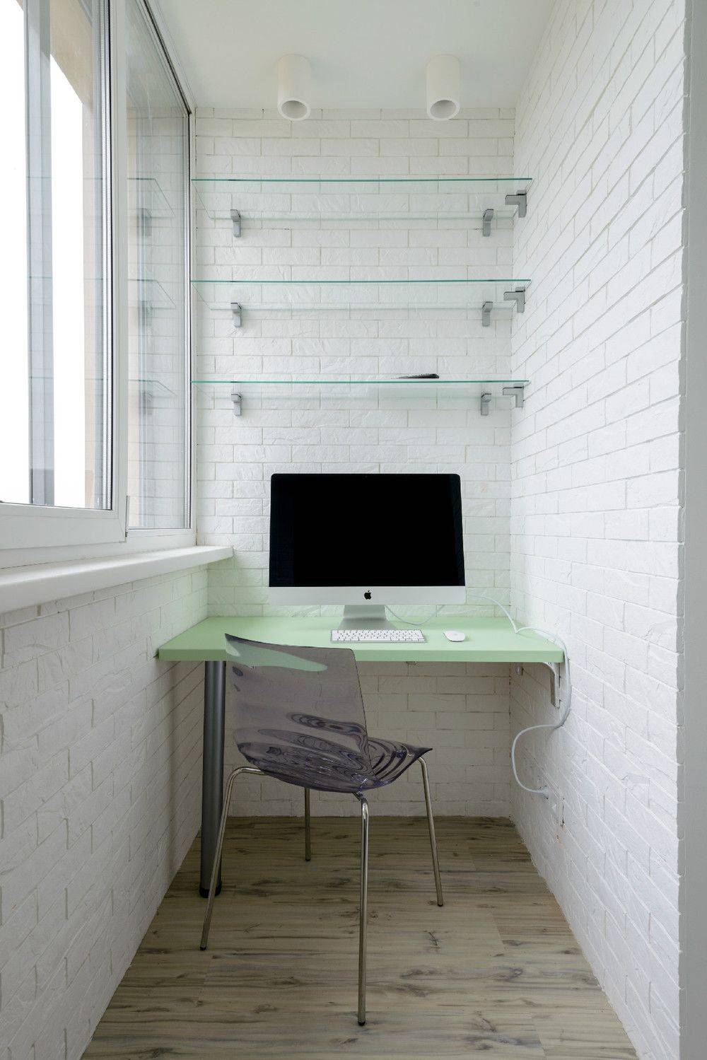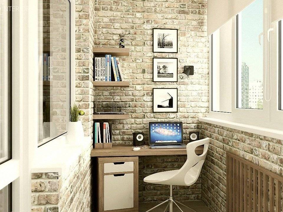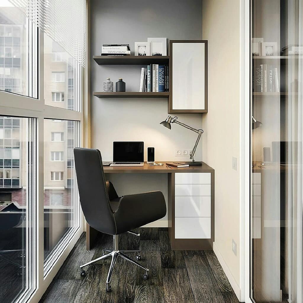 Организация кабинета с рабочим местом у стены на балконеИсточник dizainexpert.ru