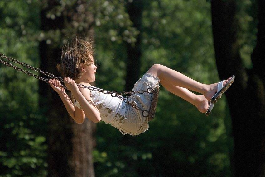 - Если качели устанавливают детям, то выбирают хорошо обозримое место. Так будет проще вести наблюдение за происходящими событиями.