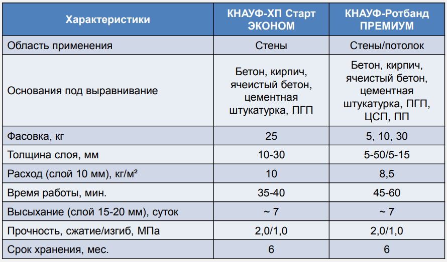 Вот общие технические характеристики продукта «Ротбанд» («Rotband») от Knauf: