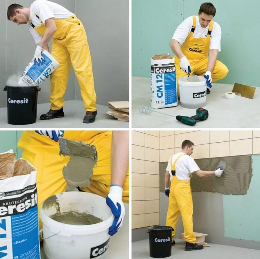 Сначала надо определиться с клеевым составом, потому что не все знают, чем клеить кафельную плитку на гипсокартон. В принципе, каких-то ограничений в этом плане нет. И все же специалисты рекомендуют: