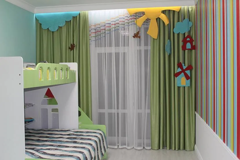 При выборе яркого красочного тюля не забудьте учесть функциональную принадлежность комнаты. Так, в детской и спальне, кричащие цвета могут вызвать агрессию и раздражение.