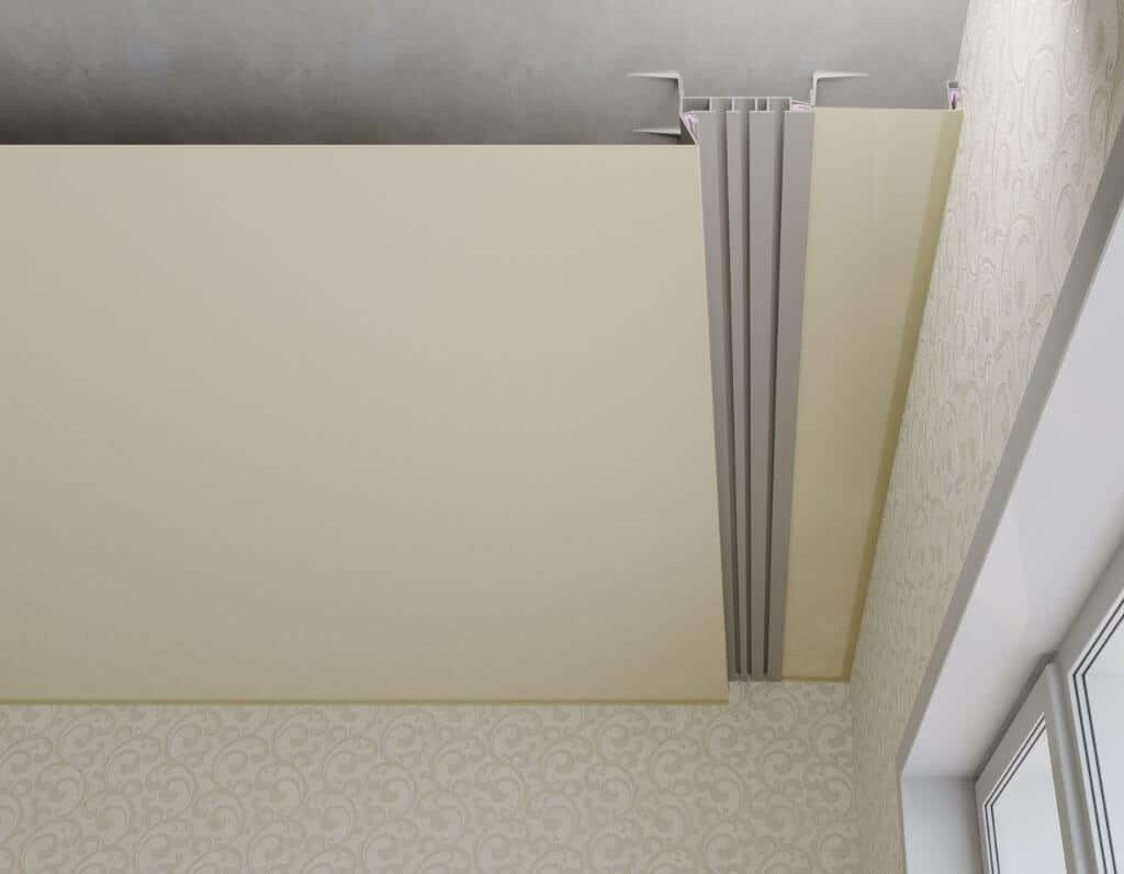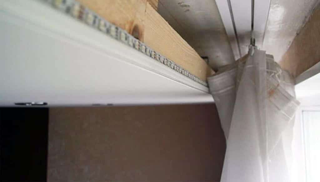 Что же делать тем, кто уже натянул ПВХ-потолок, но при этом не озаботился ни установкой закладных, ни созданием ниши? Как повесить гардину в этом случае?