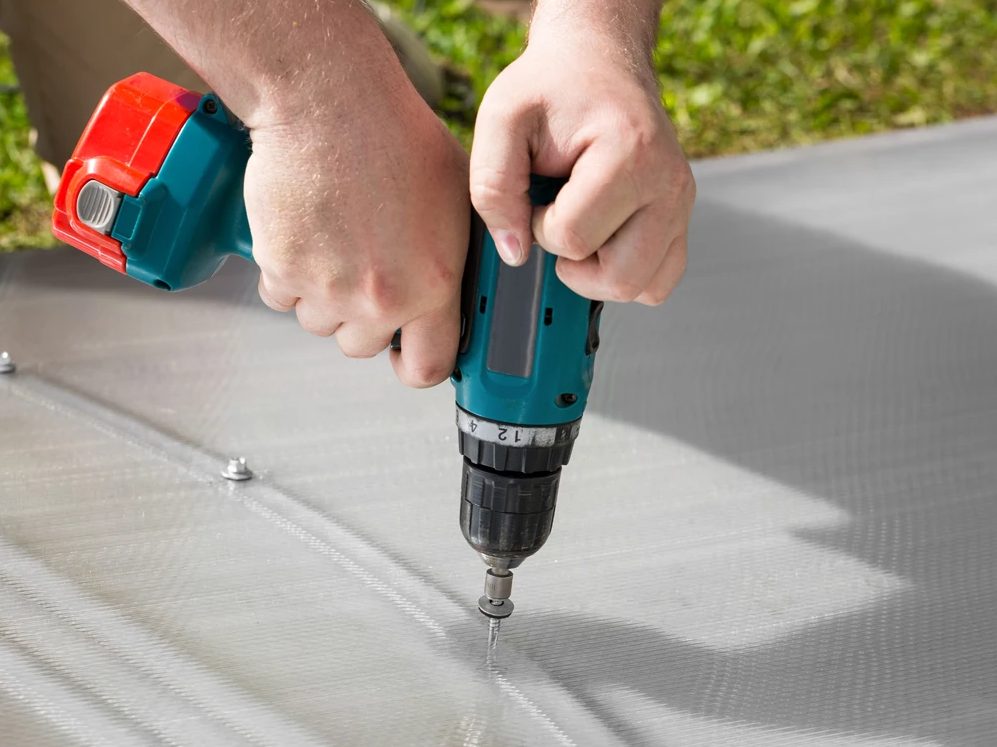 Отверстия высверливают на 2-3 мм больше диаметра крепежа для компенсации термического расширения отверстия в панели. Диаметр используемых саморезов должен составлять от 4,8 до 8 мм, длина – в зависимости от толщины поликарбонатного листа и элемента каркаса.