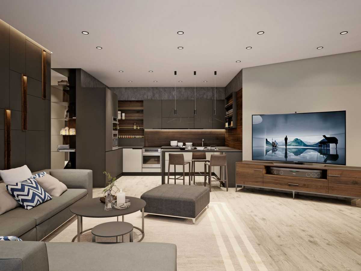 Совмещение гостиной с кухней