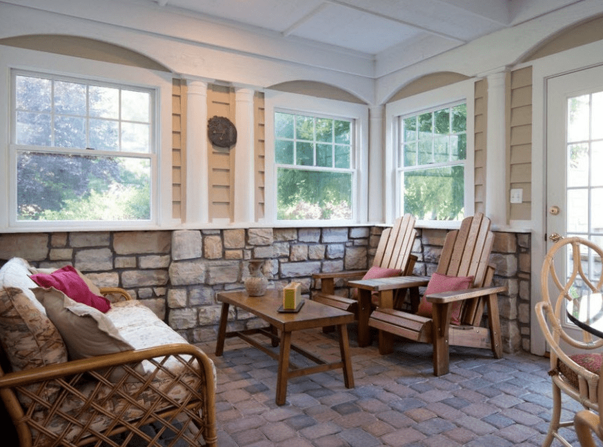 Изучая вопрос чем покрыть пол на веранде частного дома обратим внимание на линолеум. Он делается из комбинации поливинилхлорида и полимеров, что дает превосходные качества для напольного покрытия