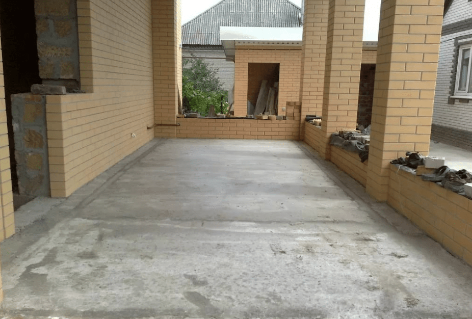 Бетонный пол для веранды самый простой и в тот же момент тяжелый вариант покрытия. Для него нужно лишь иметь заранее сделанный монолитный фундамент, либо покрыть перекрытия бетонными плитами.