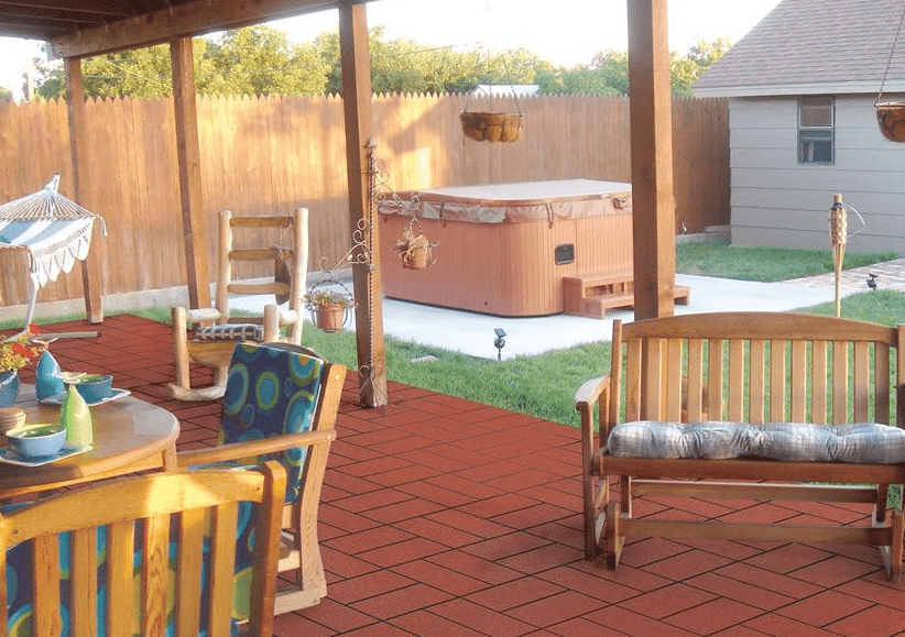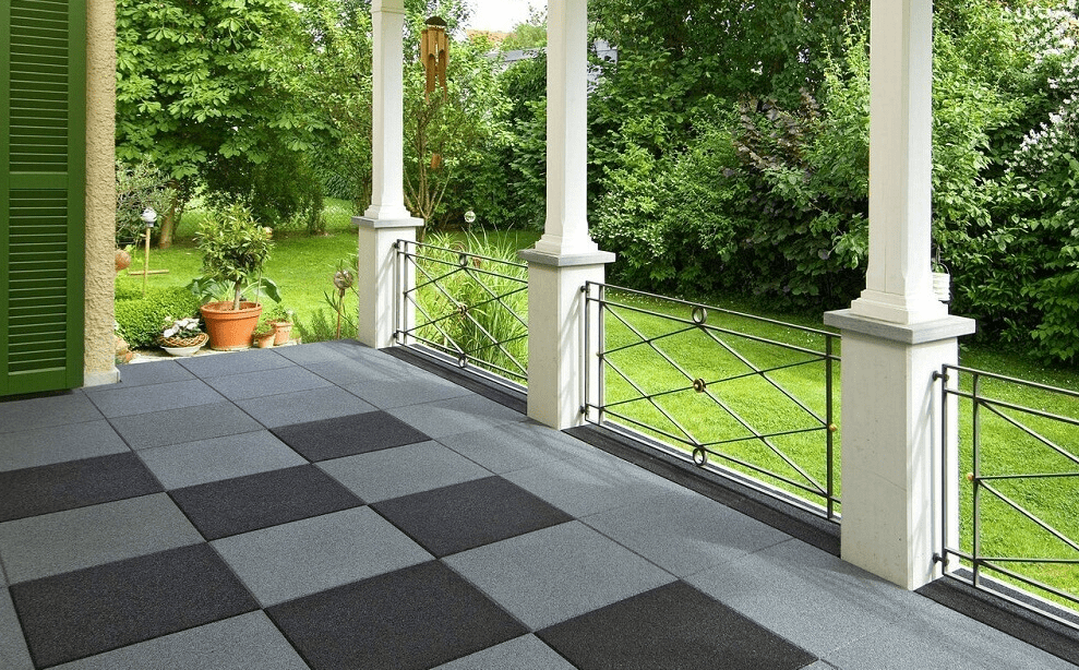 Каучуковое покрытие для веранды представляет, по сути, резину. Напольное покрытие из него представляет отдельные плитки либо монолитные куски, которые обладают уникальными свойствами: