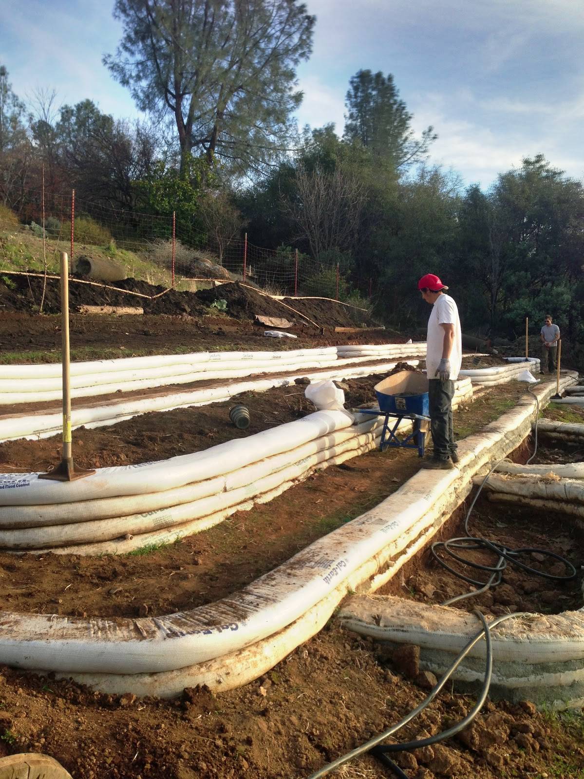 Важным этапом работы является снятие плодородного слоя земли перед тем, как будет создан уступ. Впоследствии эту землю следует вернуть на место, чтобы сохранить ее плодородные свойства.