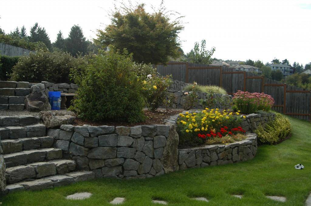 Приступая к ландшафтному дизайну рельефной местности, для начала нужно создать рисунок участка и отметить на бумаге расположение террас, которые будут скрадывать перепады местности. Чем больше крутизна склона, тем больше потребуется запланировать таких террас. Далее нужно рассчитать высоту подпорных стенок, продумать, сколько земли необходимо перенести в процессе строительства. Затем выполнить разметку на местности и выполнить земляные работы.