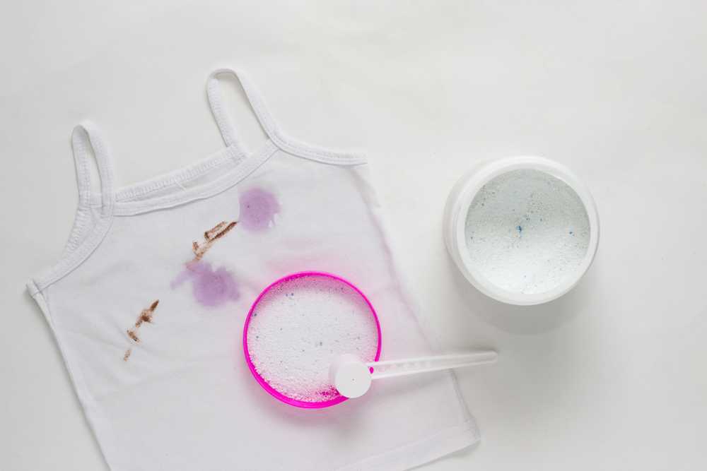 Этот состав можно использовать для удаления пятен как с белых, так и с цветных вещей.