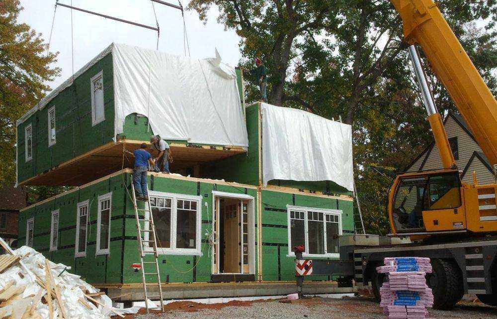 Технологии позволяют изготавливать в заводских условиях готовые модули с полностью сформированным пирогом стен и проложенными коммуникациями. На месте модули собирают в готовый дом за один-два дня. Минусы – высокая стоимость и необходимость обеспечить подъезд тяжелой спецтехники. В Европе технология отработана и популярна, но В России пока мало распространена.