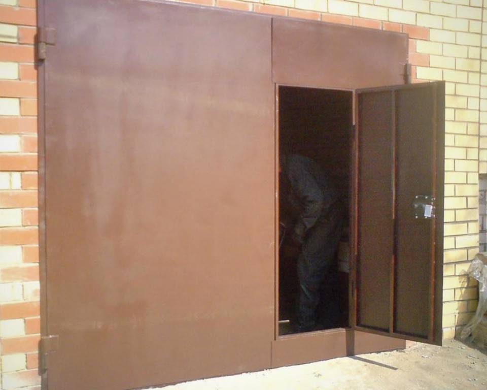 Ворота должны защищать ваше имущество. Защитные функции зависят от материала, из которого будет сделана конструкция. Металлические — самые надежные и прочные. Стальной оцинкованный лист шириной в 2,5 мм отлично справится с этой задачей. С помощью накладных запоров для внешних колодок и бронированных накладок на внутренний замок можно дополнительно укрепить конструкцию. Деревянные двери не очень надежные, поэтому их можно устанавливать лишь на охраняемых стоянках.