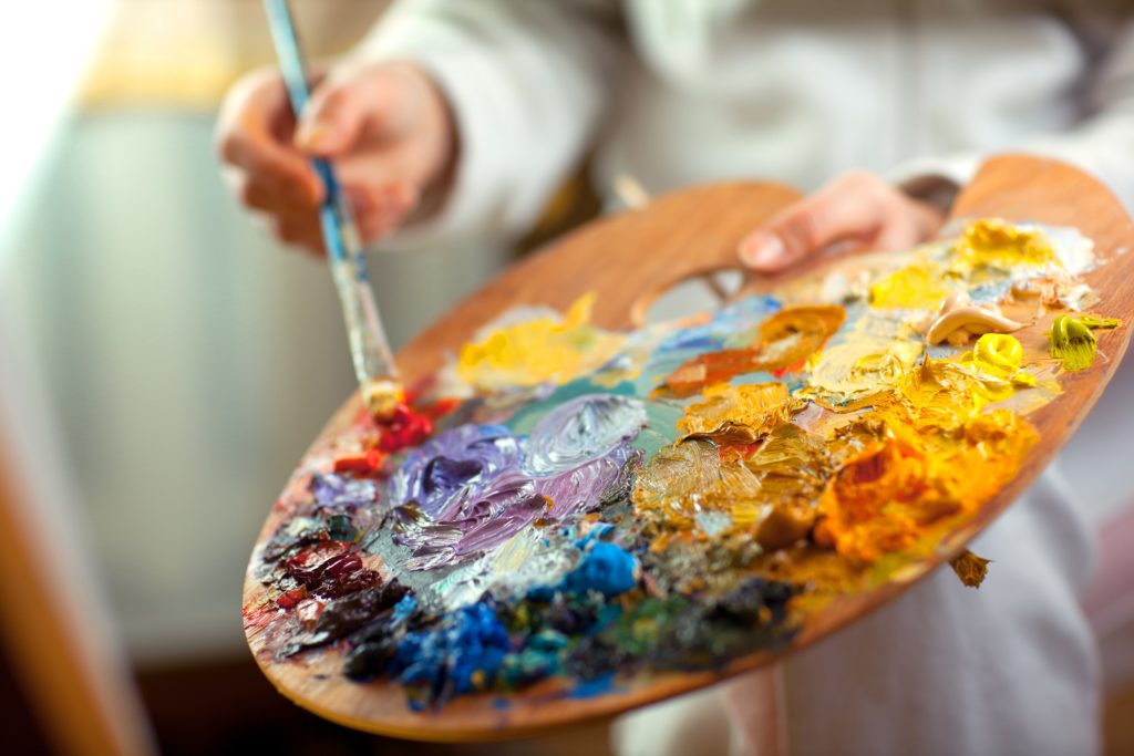 В первую очередь необходимо позаботиться о том, чтобы материал постоянно находился в рабочем состоянии. Такой состав очень быстро высыхает, поэтому нужно выдавливать акриловые краски из тюбика небольшими порциями. Если для смешивания цветов используется пластиковая палитра, то лучше заранее подготовить распылитель с водой, чтобы обрызгивать поверхность, не давая материалу высыхать раньше времени. При использовании влажной поверхности, например, вощеной бумаги, распылитель не потребуется.