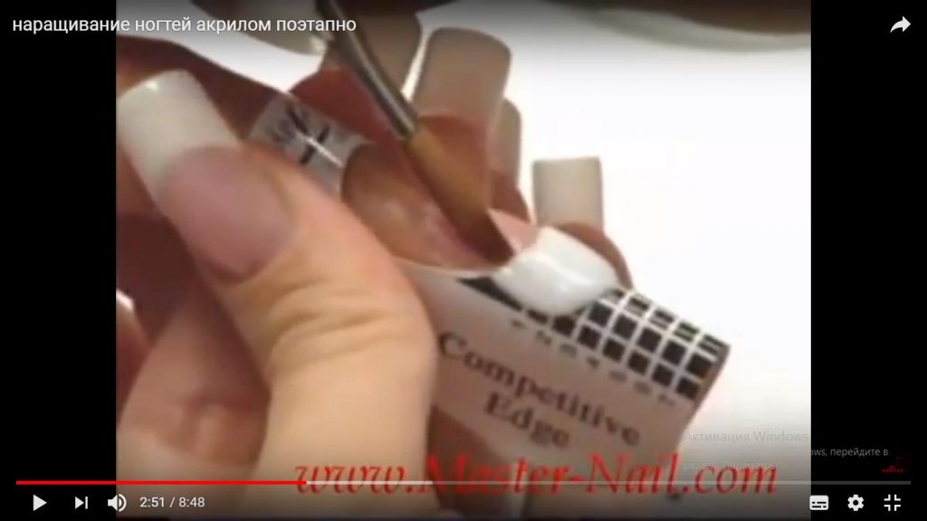 После того, как акрил застынет, подпилите ноготь. Сверху можно нанести декоративный лак.