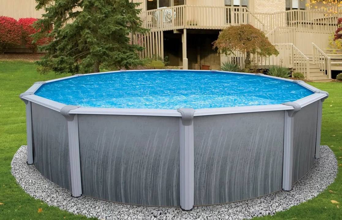 - Каркасные бассейны стоят на земле. Главное, чтобы поверхность была твердой и ровной, могла удерживать вес полного бассейна. Хотя самые большие из них имеют площадь зеркала не более 50 м2, и глубину — не более полутора метров.