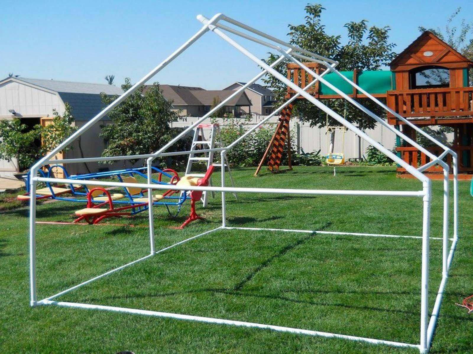 Довольно распространенными являются конструкции из пластиковых труб. Дачные беседки не исключение. Основным достоинством беседки из полипропиленовой трубы является простота сборки и легкость всей конструкции. Собрать беседку и ввести её в эксплуатацию с легкостью можно за 1 рабочий день. Отправляемся в магазин за трубами и фитингами (прямые, угловые и тройники) для их соединения и специальным паяльником для пластиковых труб. Давайте же рассмотрим, как сделать простую беседку из полипропиленовых труб своими руками.