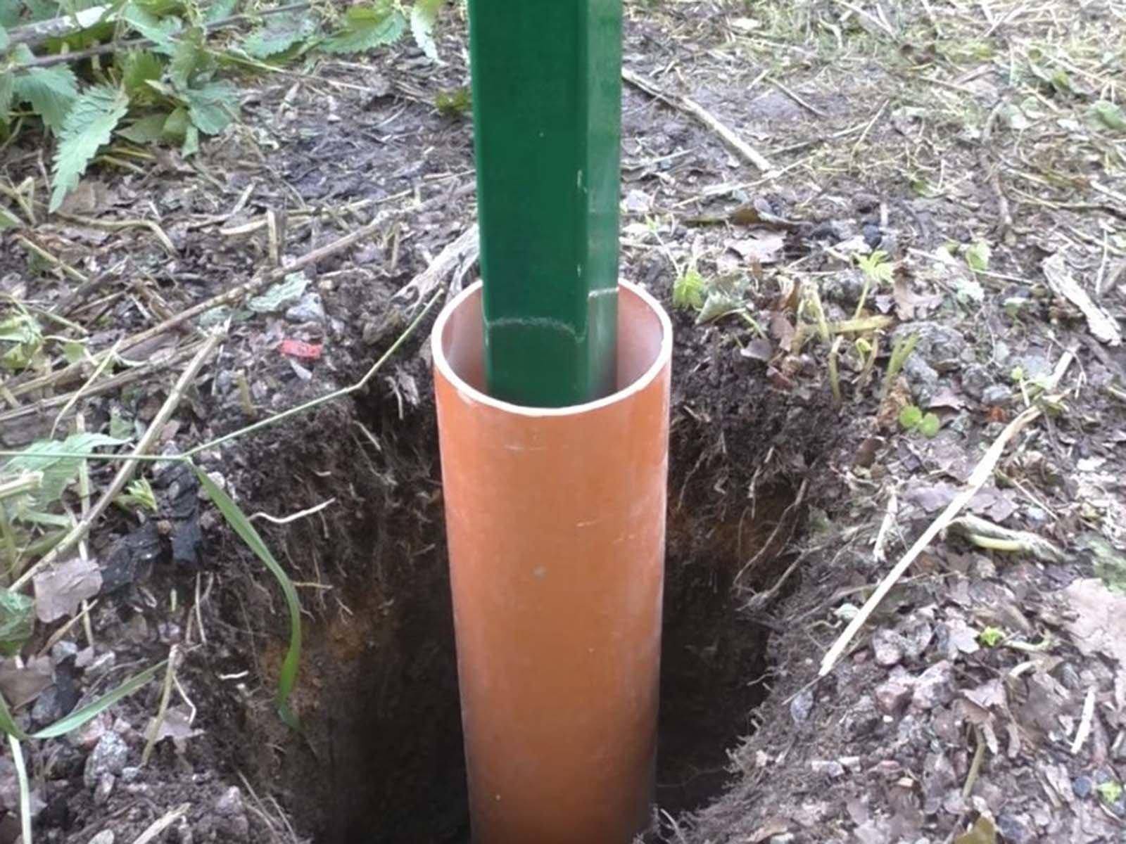 ШАГ 1: бетонируем трубы. Чтобы закрепить будущий каркас беседки из пластиковых труб – нужно надежно зафиксировать железную или пластиковую трубу, большего диаметра, в земле. Для этого дела нам понадобится небольшой бур. Делаем 4 углубления в земле, где-то около 50 – 60 см. Подготавливаем нужную трубу – отмеряем и отрезаем её, чтобы она была заподлицо с землей или же на пару сантиметров выше уровня земли. Вставляем ее в углубление и заливаем по периметру бетоном.
