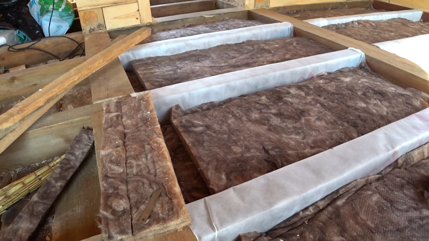 - Поверх уложенного теплоизоляционного материала укладывается пароизоляционная пленка.