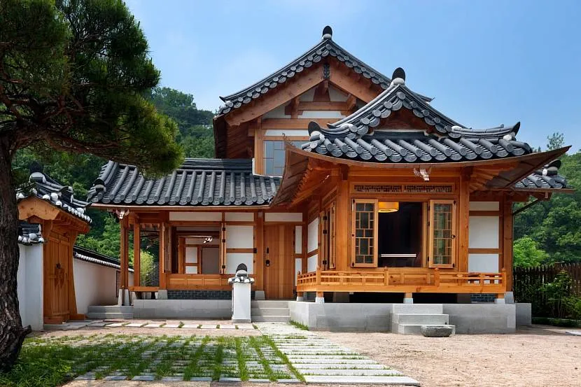 Самым популярным материалом остается дерево, поскольку зимой хорошо удерживает тепло, а летом не сильно нагревается. Сверху накрывается татами. Перед входом в дом делается бетонный порог, перед которым снимается уличная обувь.