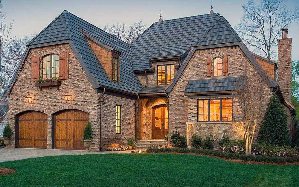 Дома в стиле Тюдор считаются следующим шагом в архитектуре английских коттеджей. Тюдоровские дома обычно являются комбинированными – т.е. первый этаж проектируется из кирпича или камня, второй этаж мансардного типа, как правило выполняется по фахверковой технологии либо с декоративными накладками из бруса. Крыши в домах стиля Тюдор
