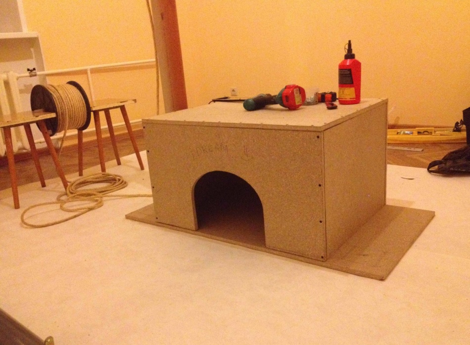 На этом работа над внутренним обустройством кошачьего домика завершена.