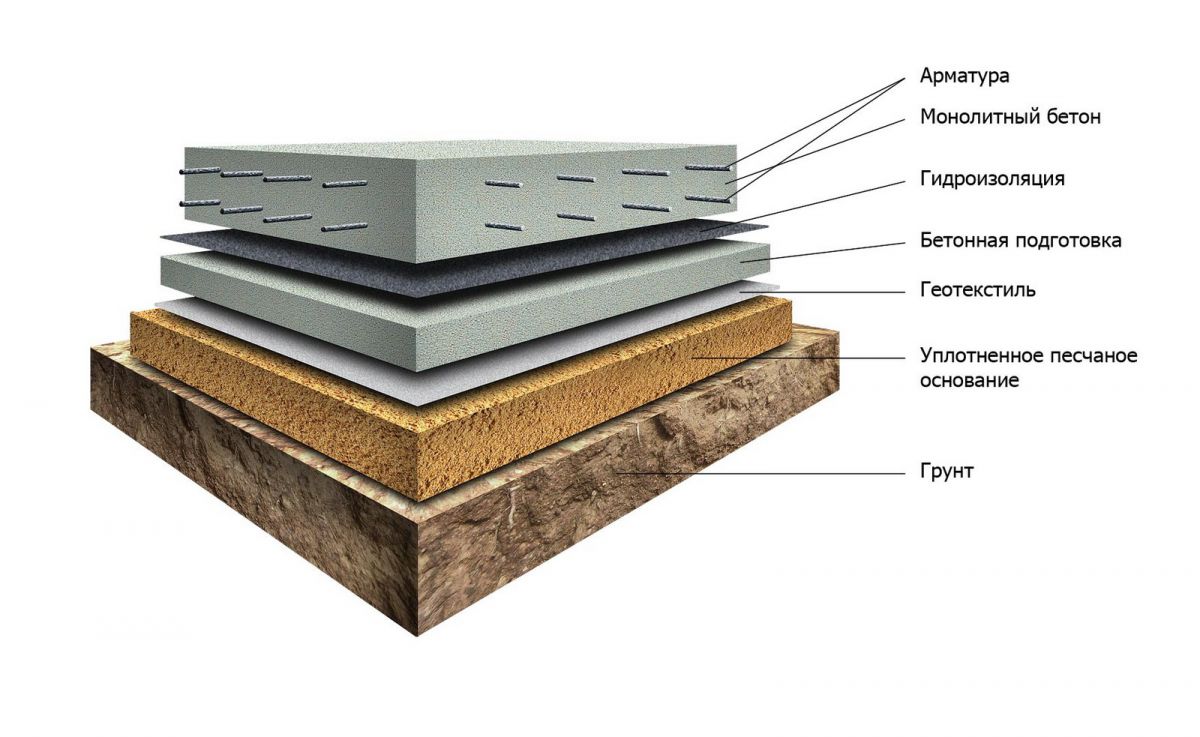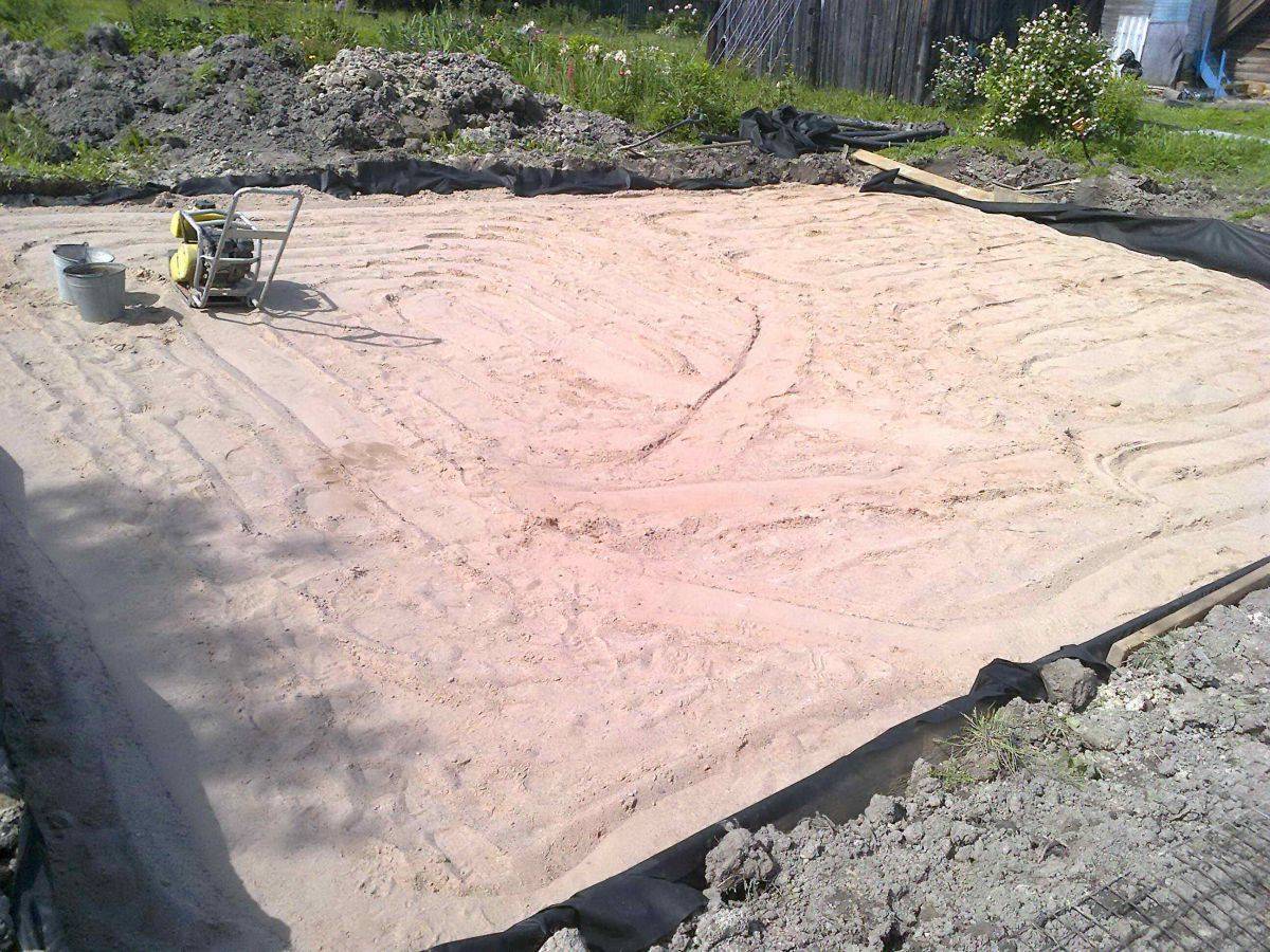 - гидроизоляционная песчаная или гравийная подушка высотой в 55 см;