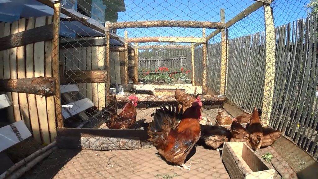 Огороженная территория для прогулок также обустроена с учетом количества птиц, планируемых к гнездованию. Так, на пять цыплят обычно должно быть предусмотрено 6 — 7 м² площади.