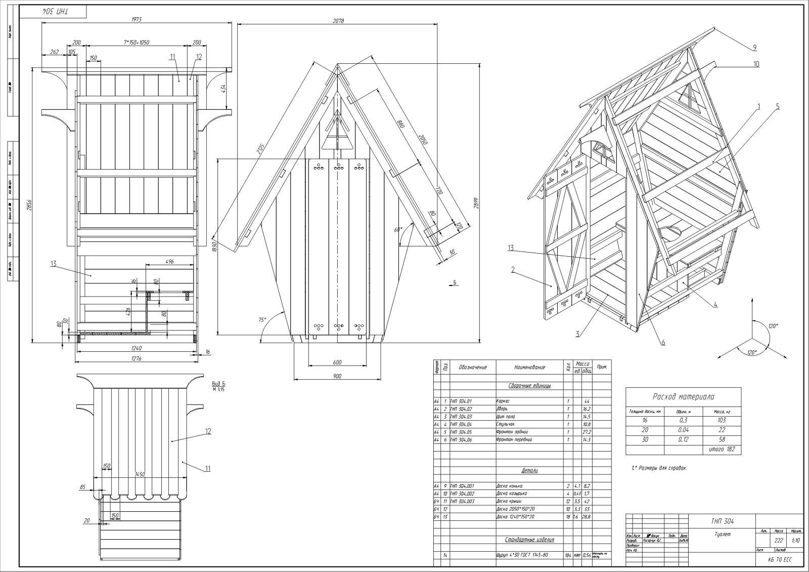 - Вторая часть ямы предназначена для расположения над ней деревянного домика. Каркас кабинки «Скворечник» собрать по схеме.
