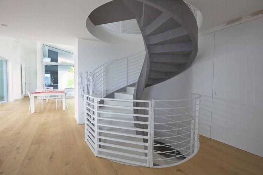 Винтовые лестницы в современных домах и дачах уже давно стали обычным явлением. Они показали себя как гораздо долговечные и уместные в новейших интерьерах. Предпочтительность их во многом заключается в том, что она огнеупорна – это немаловажный фактор в современных постройках в которых древесина уже не используется. Ниже рассмотрим несколько вариантов винтовой лестницы из бетона.