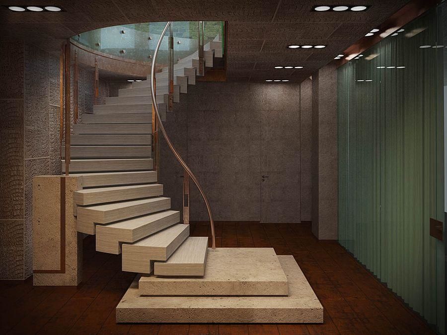 Также разнообразна сама форма и вид винтовых бетонных лестниц. Выбираются они в зависимости от общей площади помещения. В больших помещениях есть где разгуляться, а в помещениях поменьше отдается предпочтение сохранению полезной площади.