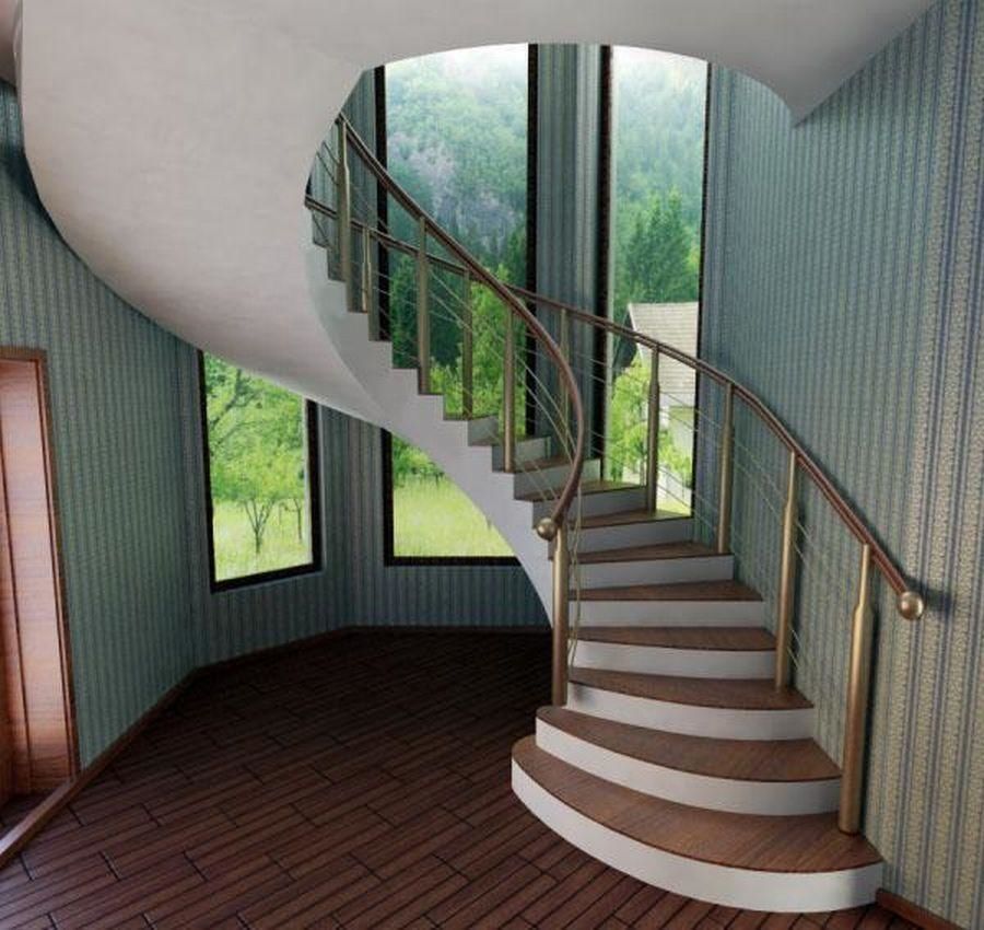 - При малой загрузки достаточно сделать ее диаметр примерно равным 140 сантиметрам. Тогда длина ступеней будет составлять примерно 60 сантиметров. Если у вас большая семья и лестницей на второй этаж вы пользуетесь часто, выберите общий диаметр, равным 2 метрам тогда длина ступеней составит минимум 80 сантиметров;