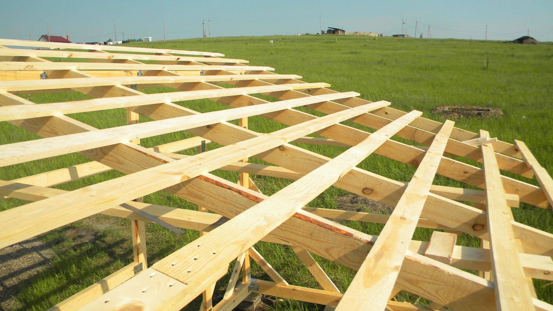 Правильная укладка шифера своими руками невозможна без прочного основания. Кровля, которая накрыта шифером имеет значительный вес, это означает, что стропильная система должна быть достаточно прочной для такой конструкции. Во время сборки каркаса необходимо следовать определенным рекомендациям. Одной из них является правильный выбор доски для стропильных ног. Оптимальным вариантом считается изделие с сечением 10×15 см. При этом доска должна быть высшего качества. Не допускается наличие трещин или повреждений от насекомых. Материал должен быть правильно высушен, допускается применение изделия с влажностью не больше 16%.