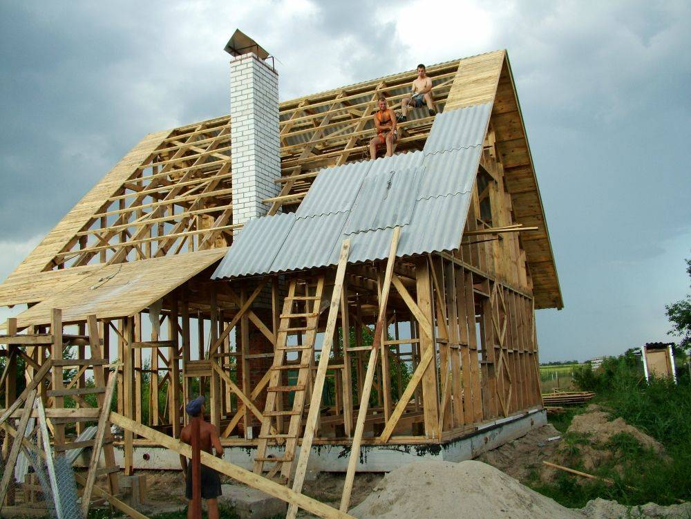 Для установки стропильных пар нужно несколько пар рук!