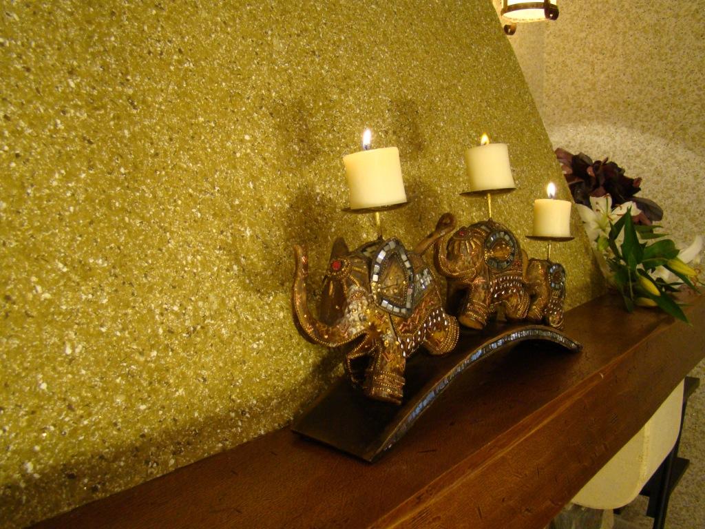В самых первых смесях действительно применяли волокна натурального шелка. Это и делало их достаточно дорогими. Существуют такие марки и до сих пор (французский бренд “Сенедеко”, например). Кроме этого, производят штукатурку с включениями перламутра и пудры из цветных металлов. Связующим выступает прозрачный акрил, который позволяет свету проникать в толщу слоя и играть на гранях блестящих включений.