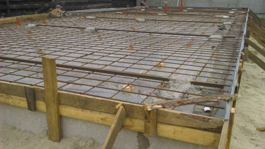 - вес материала, каркас армирования равномерно укладывают, распределяя по всей площади заливаемой бетоном поверхности;